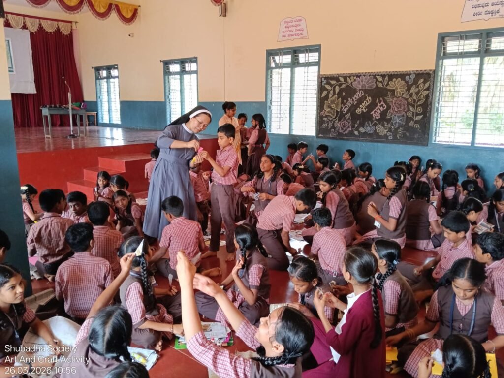 On 26th March 2026, Shubadha Society, Suralpady organized an Art and Craft Programme for 200 students of Rosamystica Higher Primary School, Kinnikambla, aiming to nurture creativity through hands-on learning.